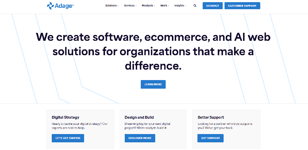 Adage Technologies is the best all-around digital agency in Chicago, but mostly because they rent out their platforms. Adage has been helping businesses since 2005, providing a lot of digital services, but they only work with SaaS and licensed platforms like Shopify, BigCommerce, and Adobe Commerce. This means clients won't be able to be as flexible in the long run. If a business is more interested in general digital services than eCommerce, Adage is a good choice.