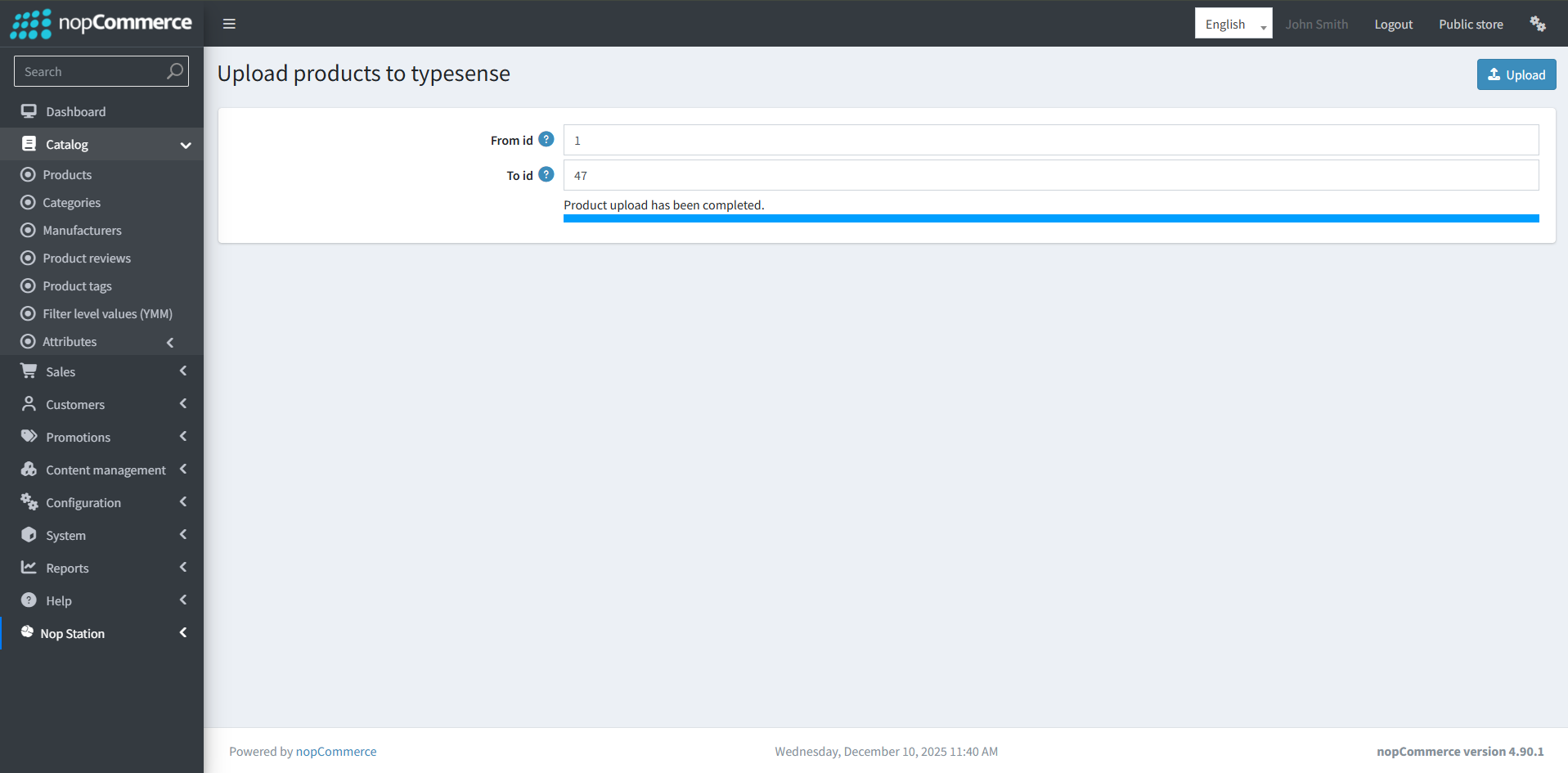 - Go to Admin → Nop Station → Plugins → Typesense Search → Upload Products